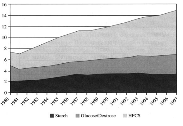 The EU's HFS industry is subject to rigorous government interventions, most importantly through the allocation by country and company of annual production quotas. These quotas can only change when there is a new member-country of the EU - bringing in an additional quota. These regulations basically protect the EU domestic sugar industry, but have put a ceiling to the HFS industry development in the EU. The EU's HFS world market share is estimated at 3%, while the US maintains a 75% share. World HFS production, at a current estimated 10 mmt, has been growing at an average 5% per year (USDA-ERS, 1998). While the US seems to have an installed over-capacity, the EU may have a potential under-capacity. HFS's principal demand comes from the soft drinks industry.